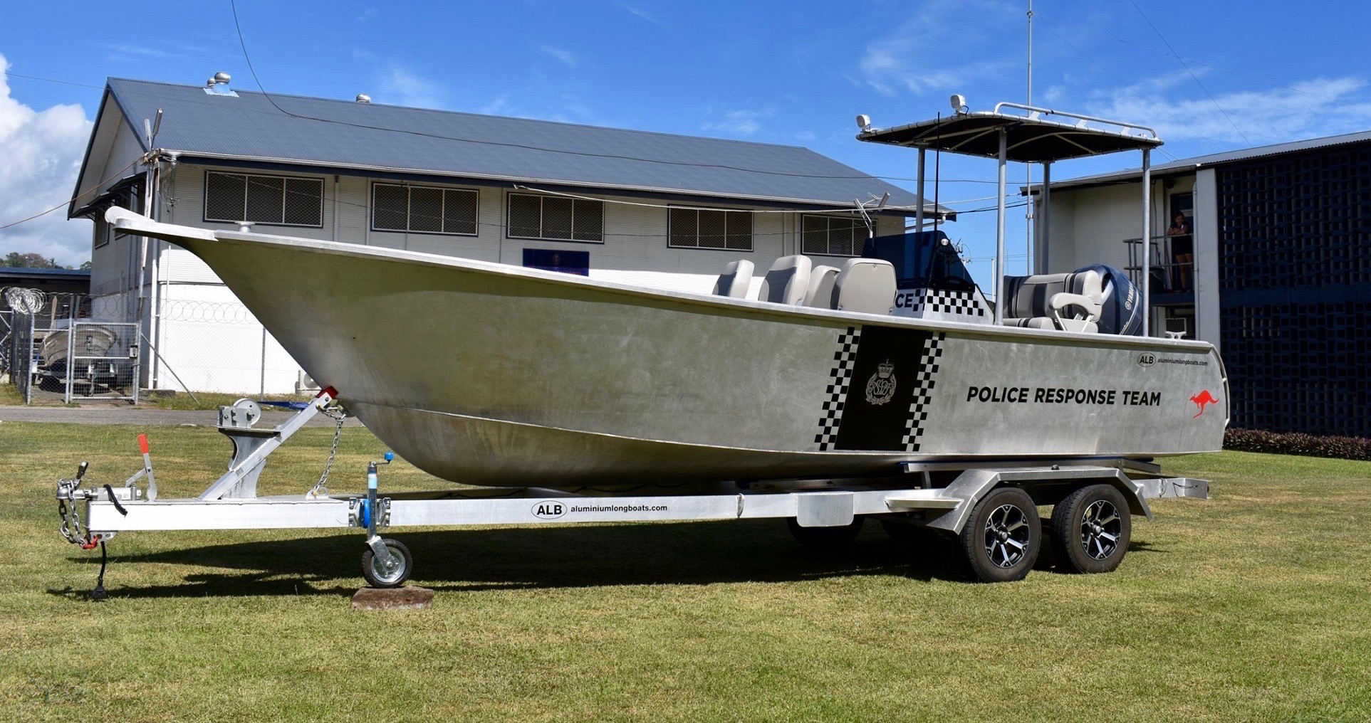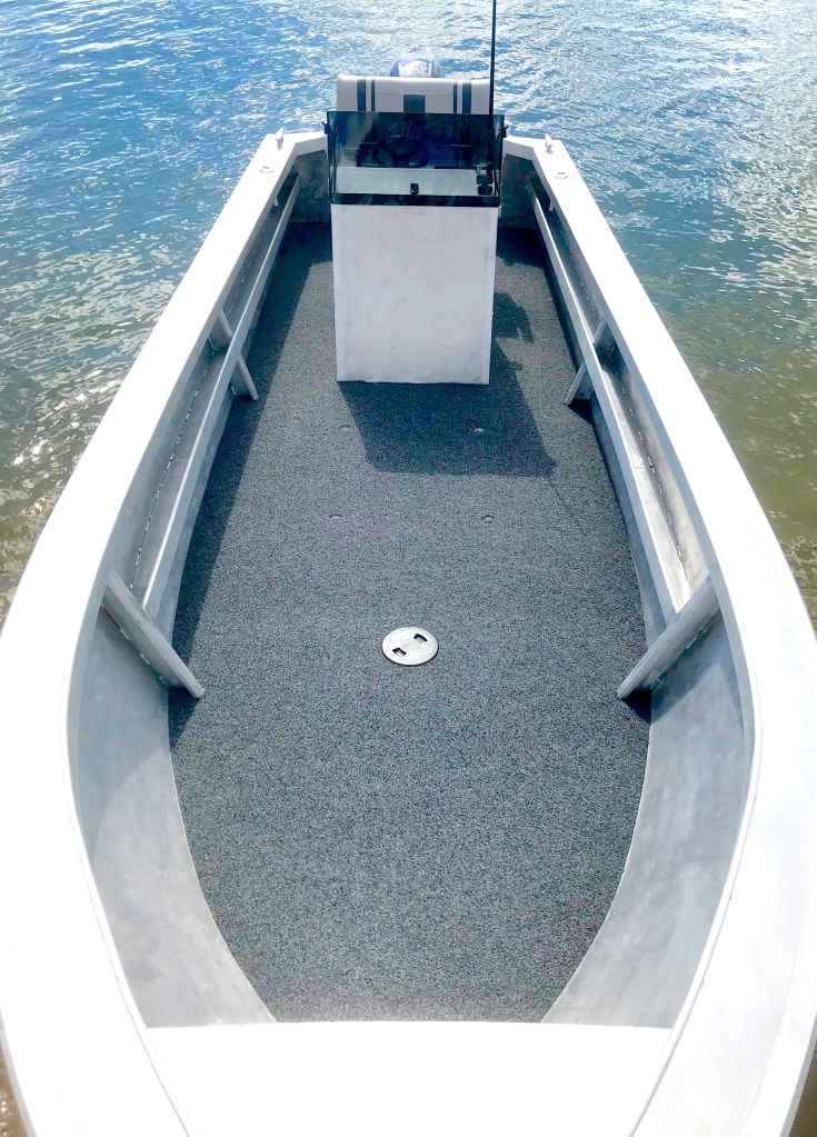 our 24 ft plate aluminium longboat. Available as tiller steer or centre. Sold as hull only or with engine, trailer and electronics packages. Various shade, seating, transom layout and casting deck options are available. Contact us for specifications and price.