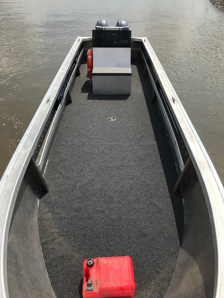 Our 32 foot plate aluminium longboat hull available in centre console with twin outboard engines. The best and most economical choice for commercial, dive and resort operators looking for a versatile boat that is safe and will outlast. Built with welded self draining decks and filled with marine floatation foam our hulls are designed to operate in remote locations and exposed to the elements. About to be packed in a 40ft HC container and shipped globally.